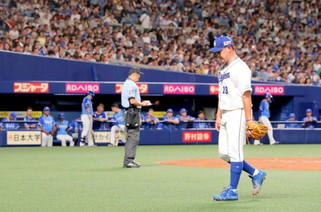 台風6号がちょうど愛知県を通過している中、ナゴヤドーム内でベテラン右腕が荒れに荒れた。初回先頭乙坂に初球を打たれ、中前打を許した。