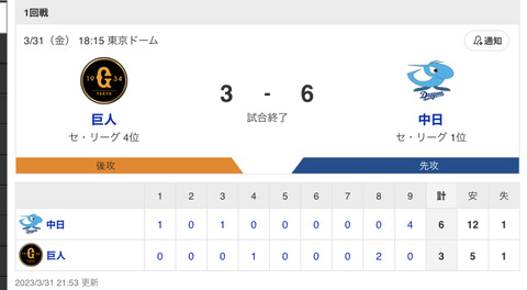 試合結果:nikkansports.com/yahooスポナビ野球