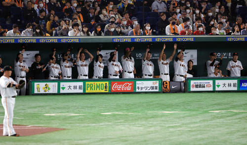 プレーボールと同時に、巨人の控え選手らが横1列に総立ち。先発ビーディが、先頭の広島菊池を左飛に打ち取ると拍手を送った。狙いは不明だが、何かしらの思惑がある模様。来日未勝利で5度目の先発のビーディへのエールと思われる。