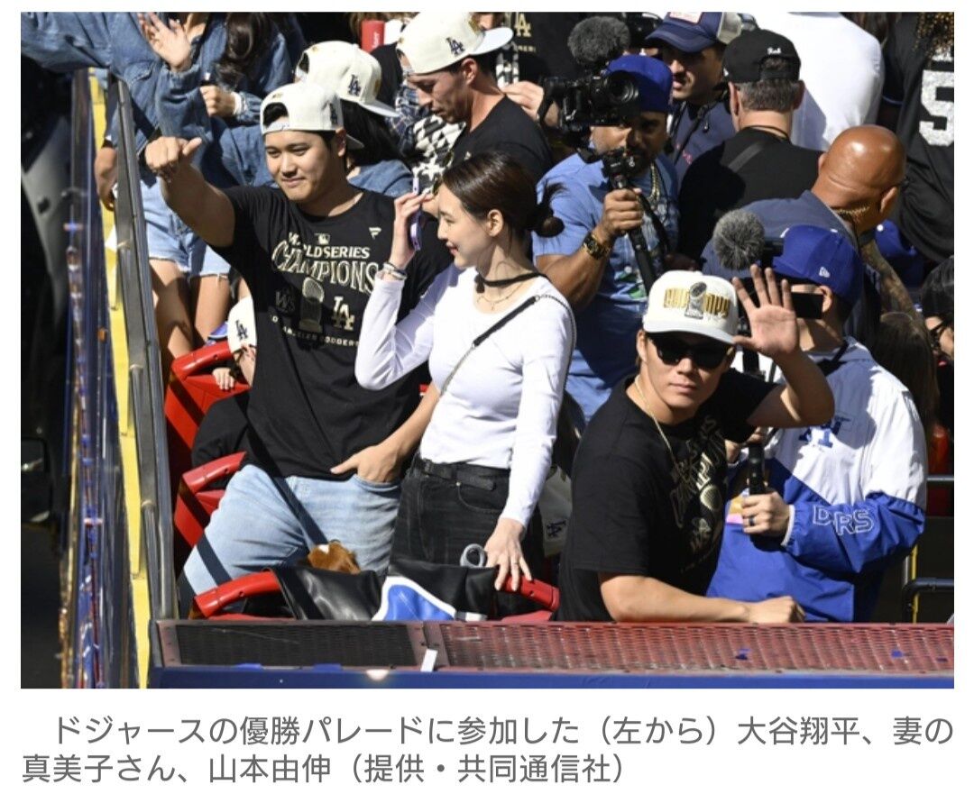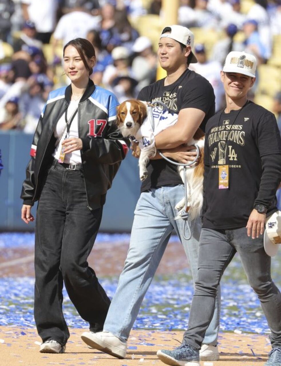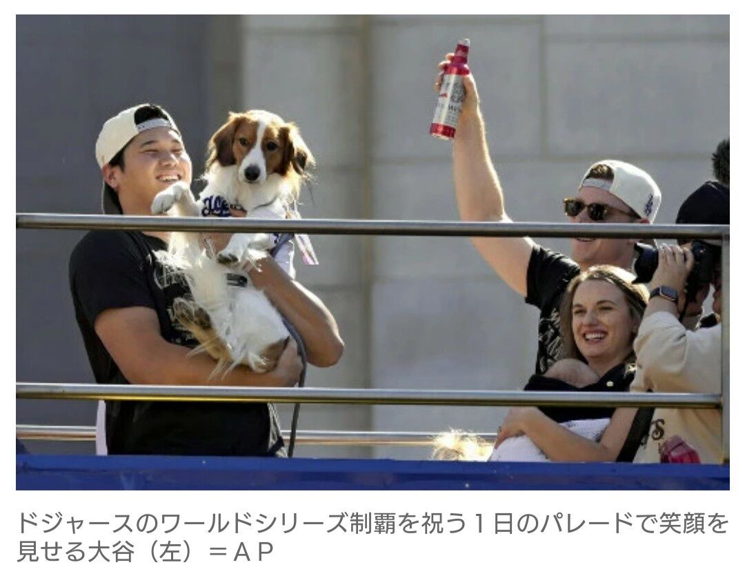 大谷翔平が感激「壮観だ」、ドジャース36年ぶり優勝パレード…真美子さんやデコピンもバスに同乗
