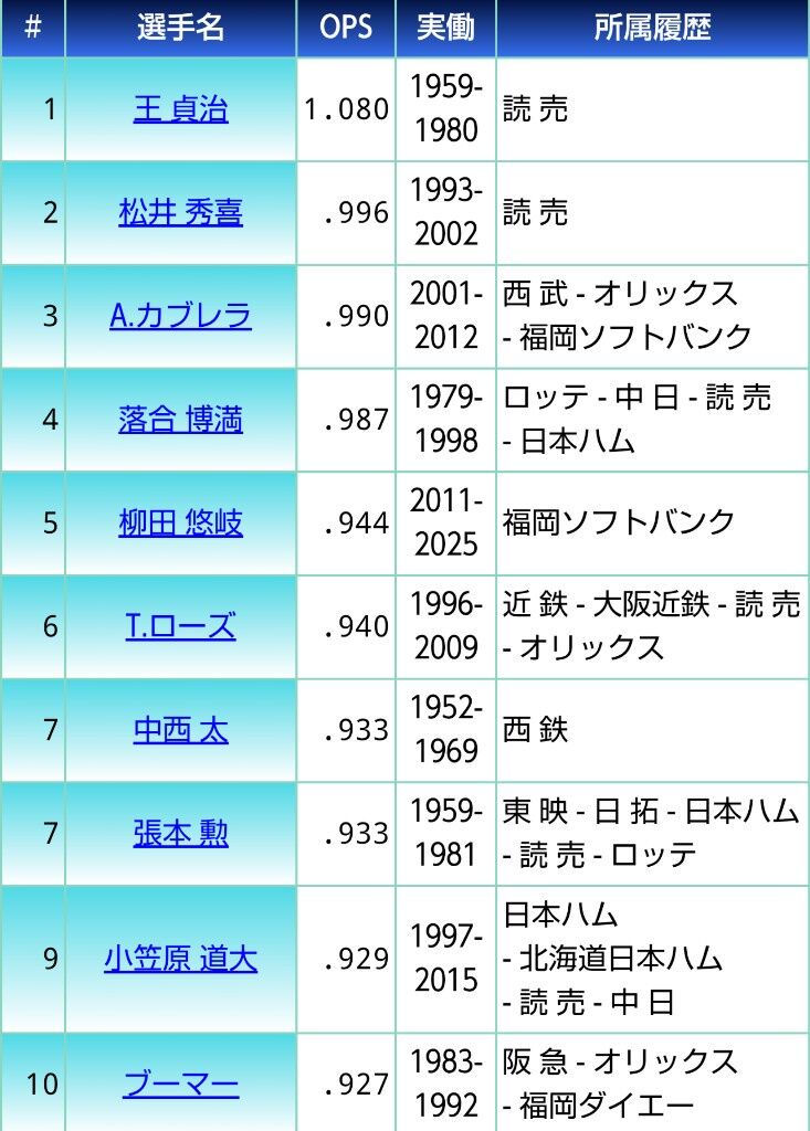 通算打率とOPSすげえわ