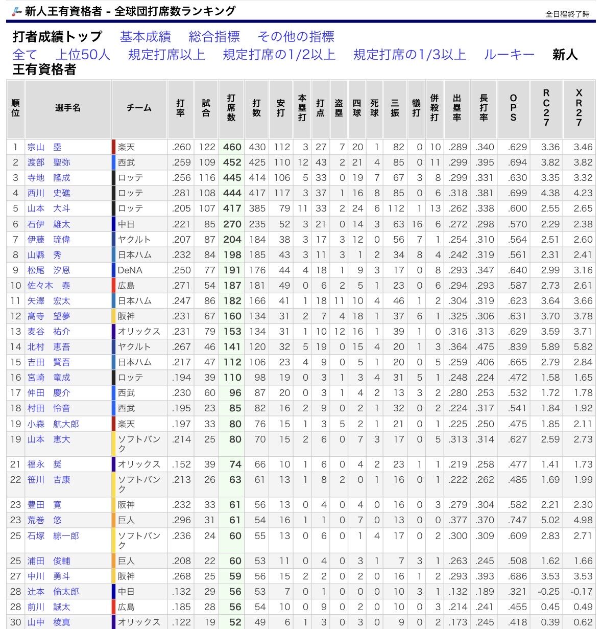 出場試合数や打席数は圧倒的に宗山でしょ?